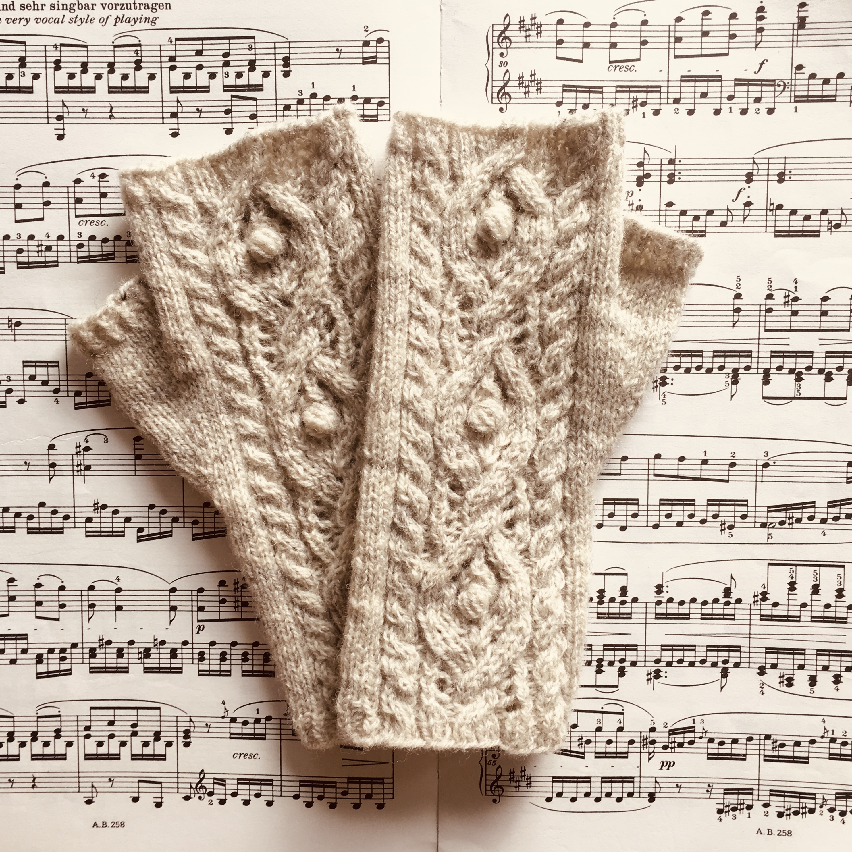 ICYMI: last week's pattern is for a graceful bagatelle of fingerless mitts with a bit of everything: lace, cables, and bobbles. They do require some attention as the motif is fairly complex, but the finished mitts are worth the effort if I do say so myself ;-)